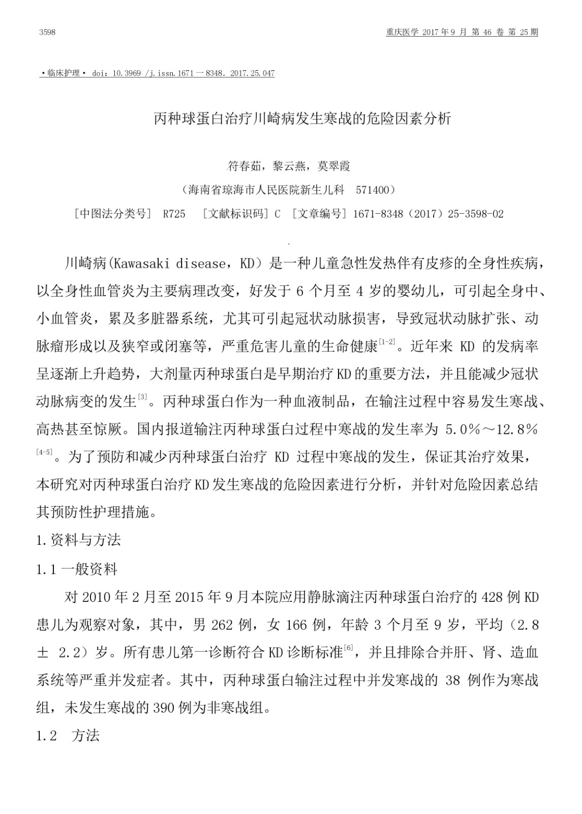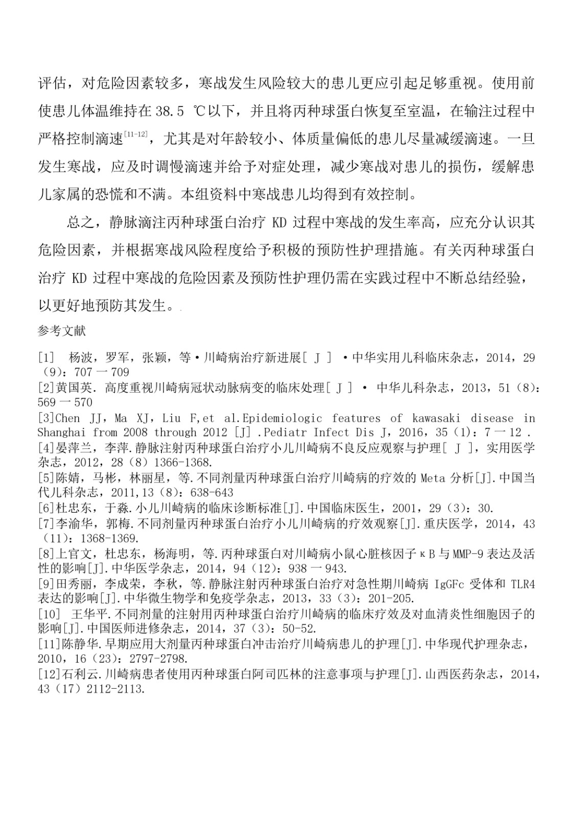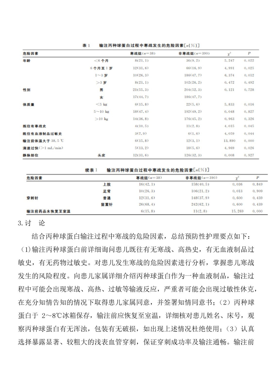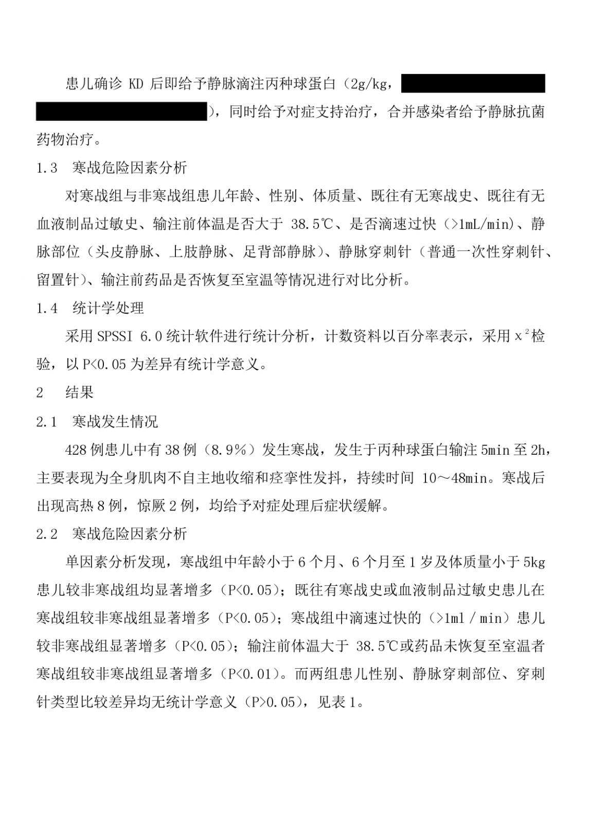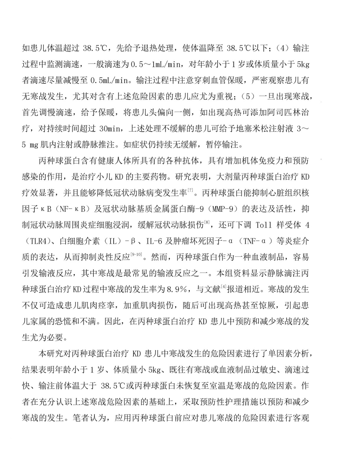 丙種球蛋白治療川崎病發生寒戰的危險因素分析